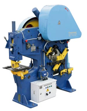 Общий принцип действия гильотинных ножниц: лист металла, фиксируется между двумя лезвиями, разрезается при опускании верхнего лезвия. Специальный градуированный упор позволяет выполнять серийные операции. Механизм прижимного типа обеспечивает точность резания.